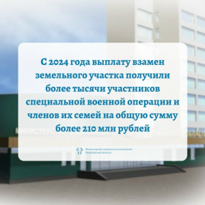 С 2024 года выплату взамен земельного участка получили более тысячи участников специальной военной операции и членов их семей на общую… Читать далее: Выплату взамен земельного участка - Перечислениях пособий, выплат, компенсаций в марте 2026 года